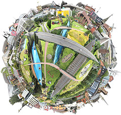 PLANET MILTON KEYNES an illustration depicting the WORLD of Milton Keynes