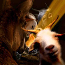 A CHRISTMAS IMAGE. 'Bunnies Under The Christmas Tree' . (Can you spot a wizard bending over the bunnies, Santa's face in the tree, a face in he moon) Aprox Image size 15x30cms GICLEE DIGITAL PRINT £35.00 + P&P